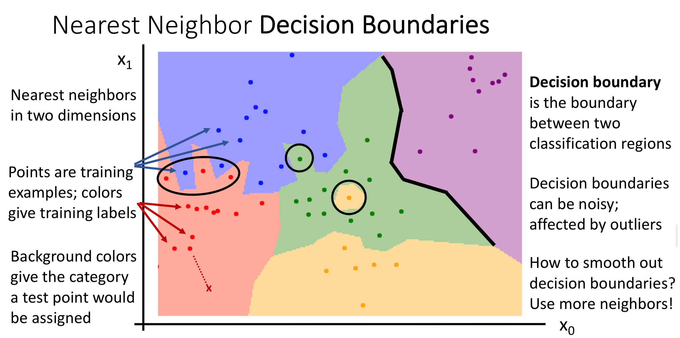 Instead of copying label from the nearest neighbor, we take the majority vote from closest points
