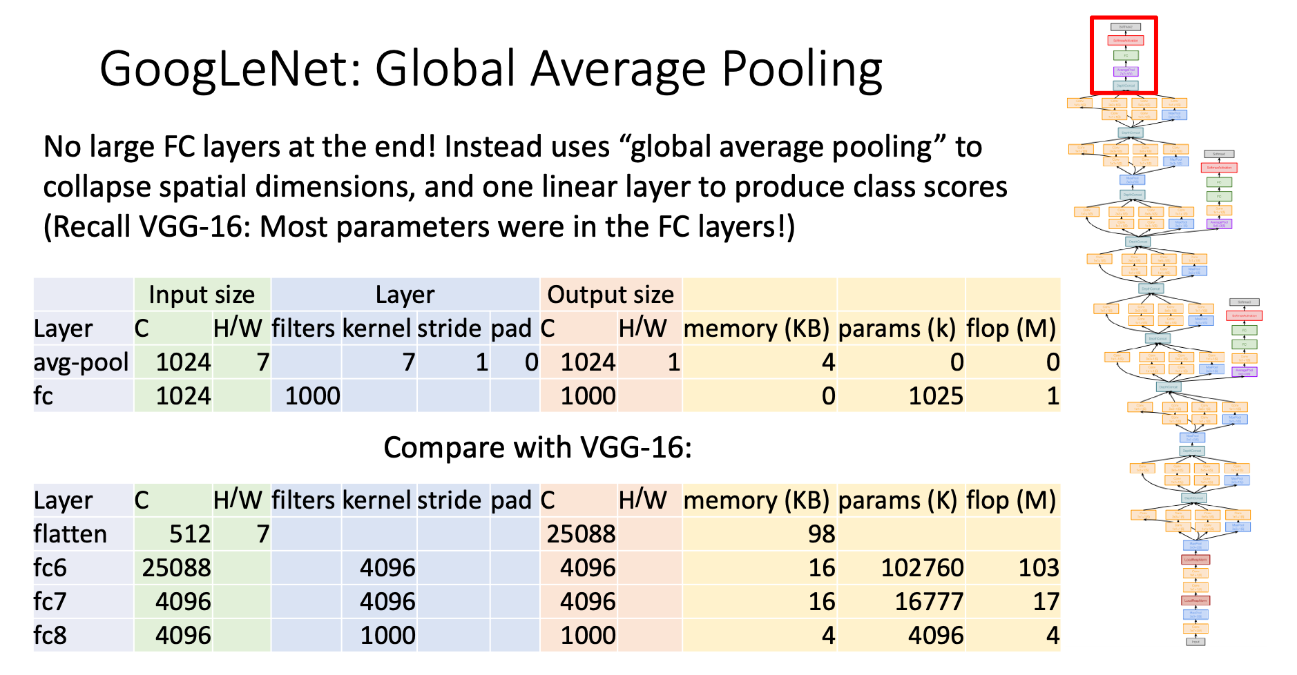Recall in AlexNet and VGG, the number of parameters skyrockets in FC layers after flattening the data