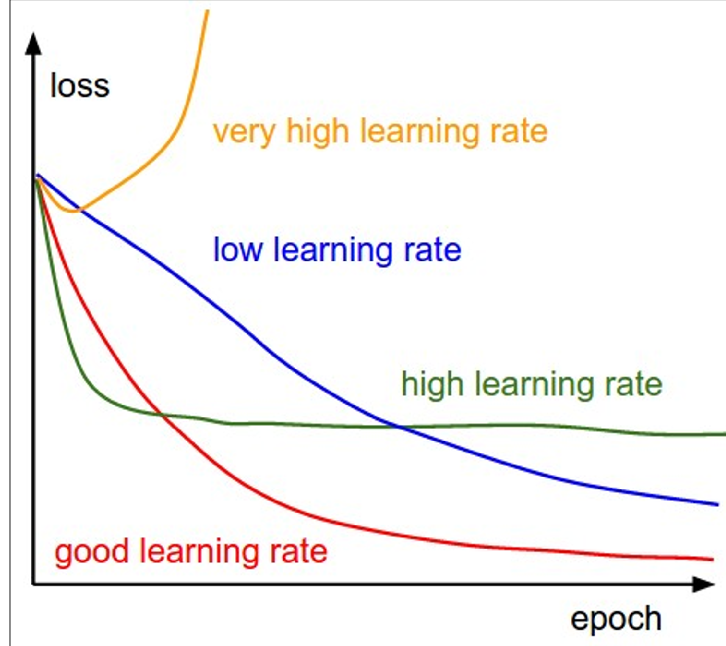 - Stop when good enough (close to “good learning rate” in the image) or time runs out