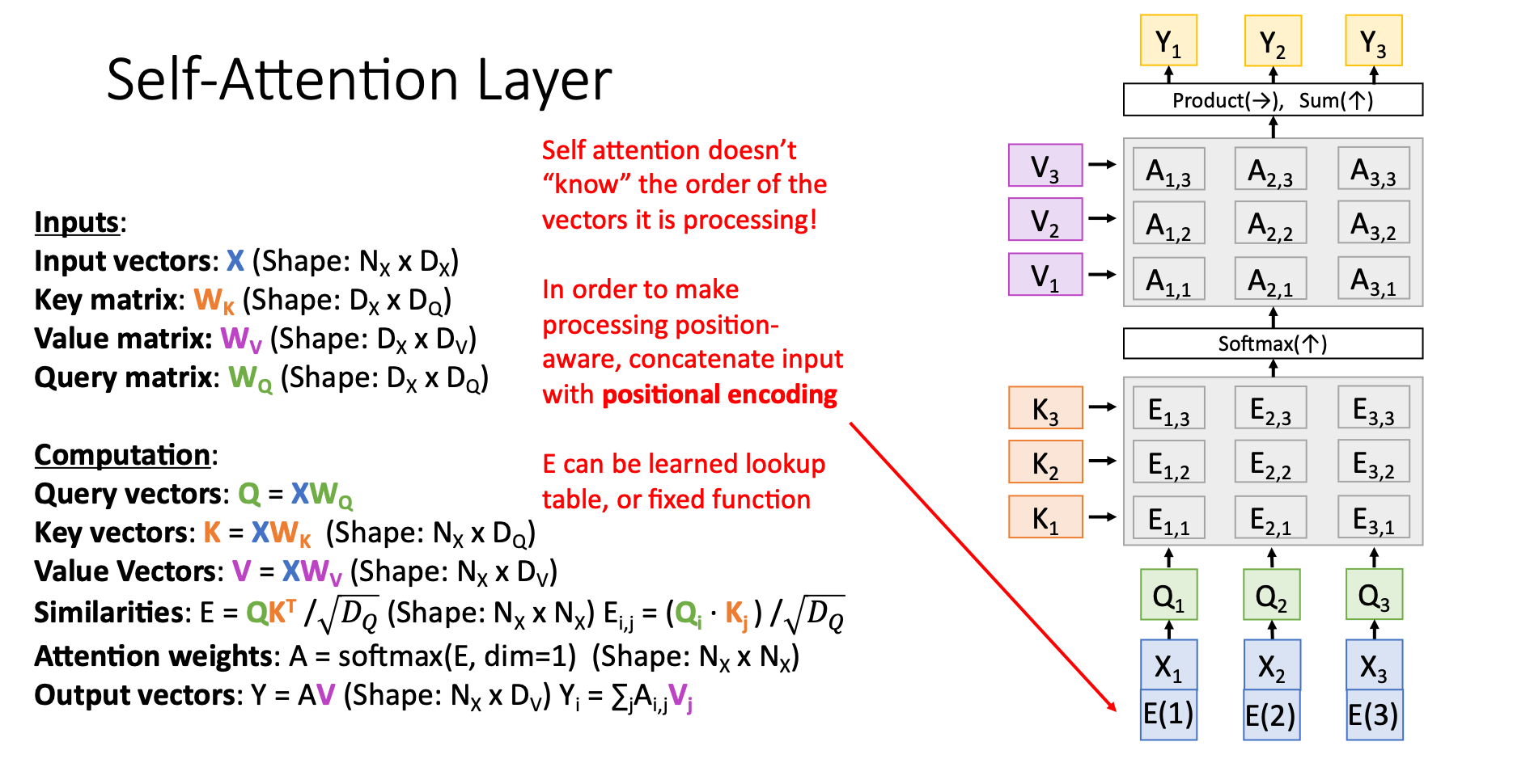 No matter how we change the order of the input vectors, we’ll result in the same . That is, permuting input vectors in self-attention layer don’t change the output