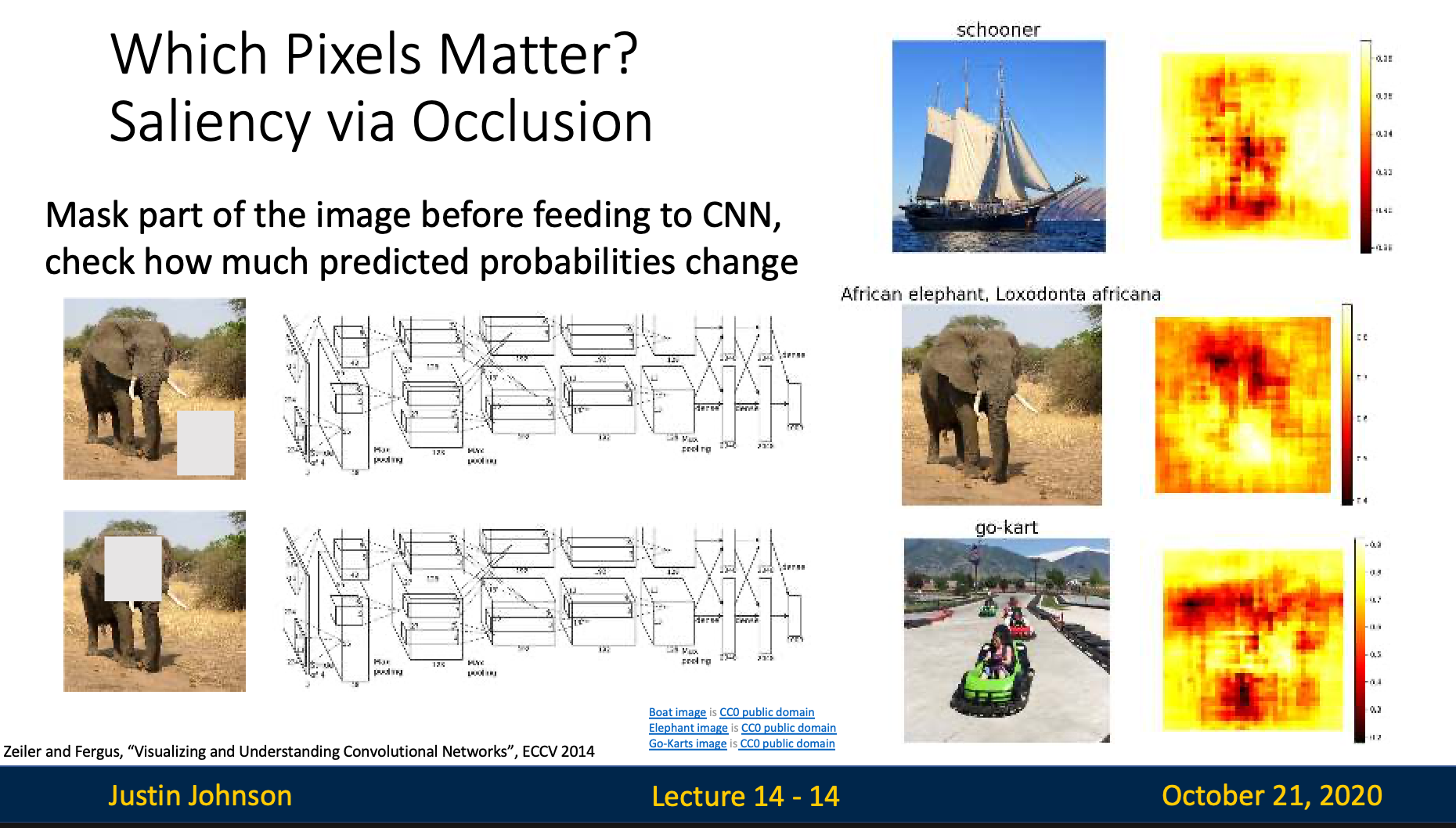 We mask part of the image before feeding it into CNN, then we check how much does this effect to the prediction probabilities