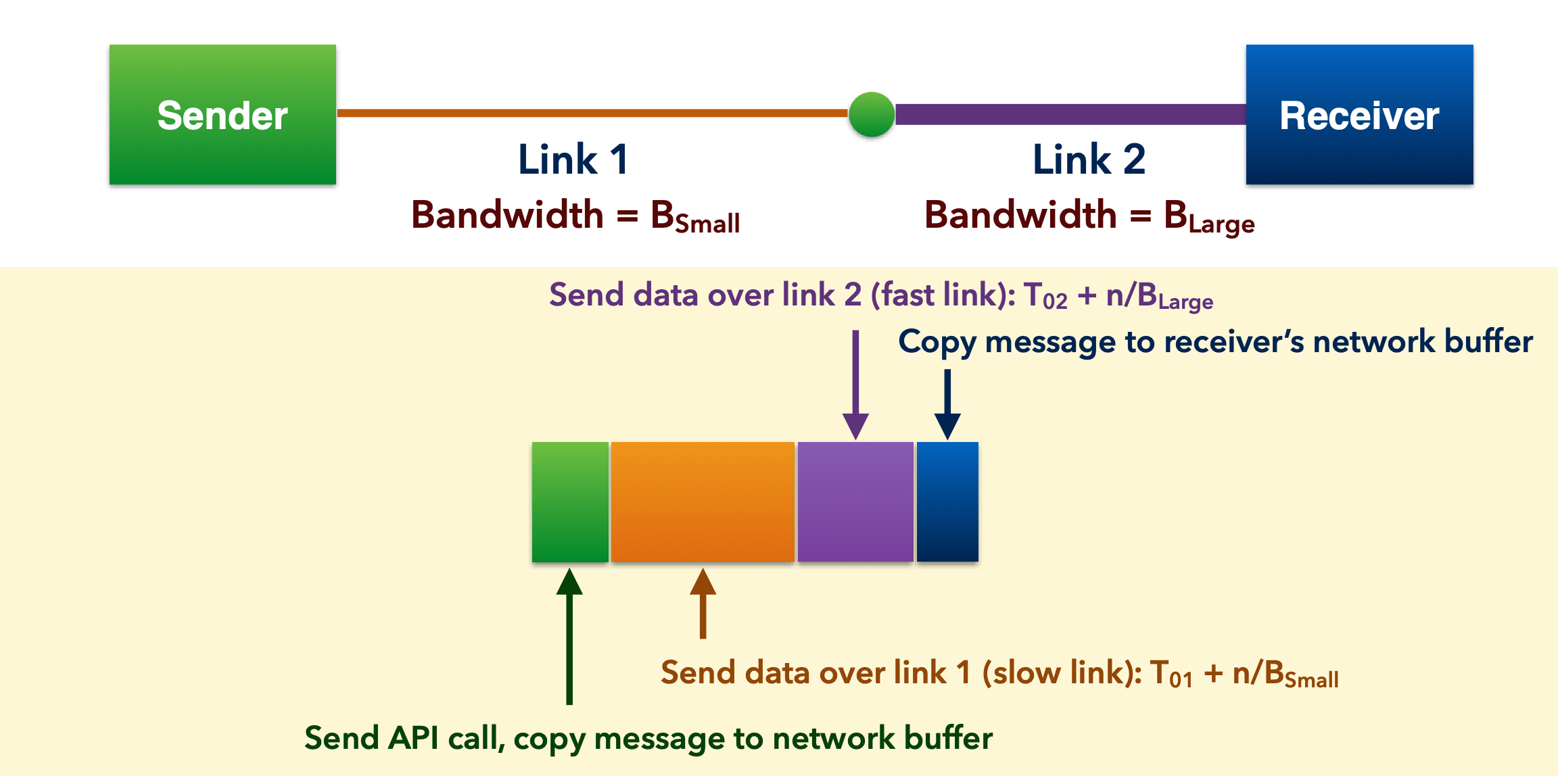 Time spent by the sender’s processor on communication tasks