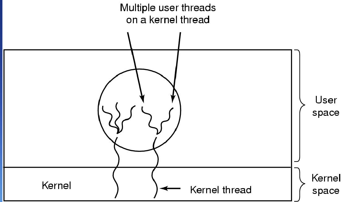 - 這些準備好的 user threads 會被分配到可用的 kernel threads 上
