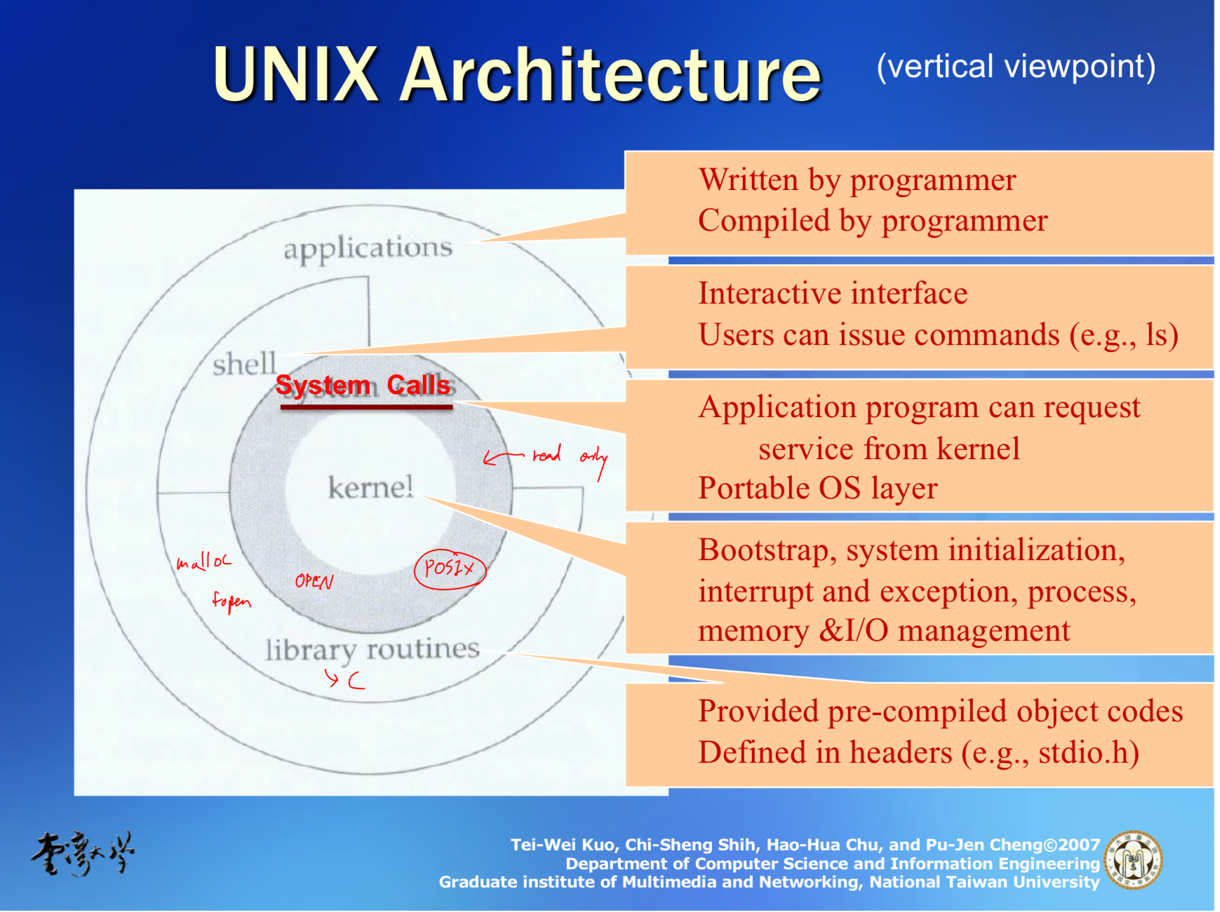 If we think of the computer as a restaurant, we won’t tell the chef (kernel) directly what we want to eat. Instead, we’ll order our food from the counter (system calls)