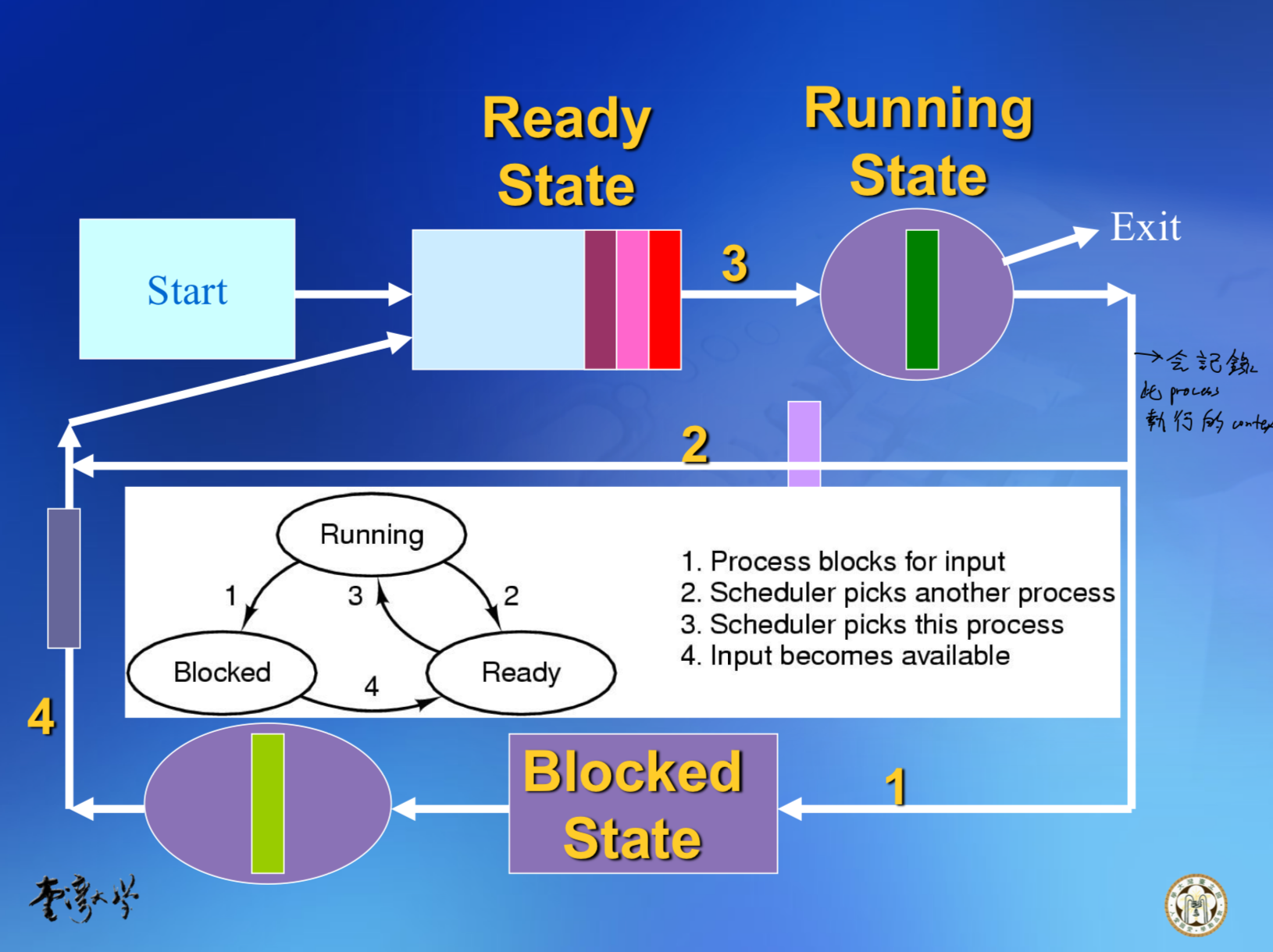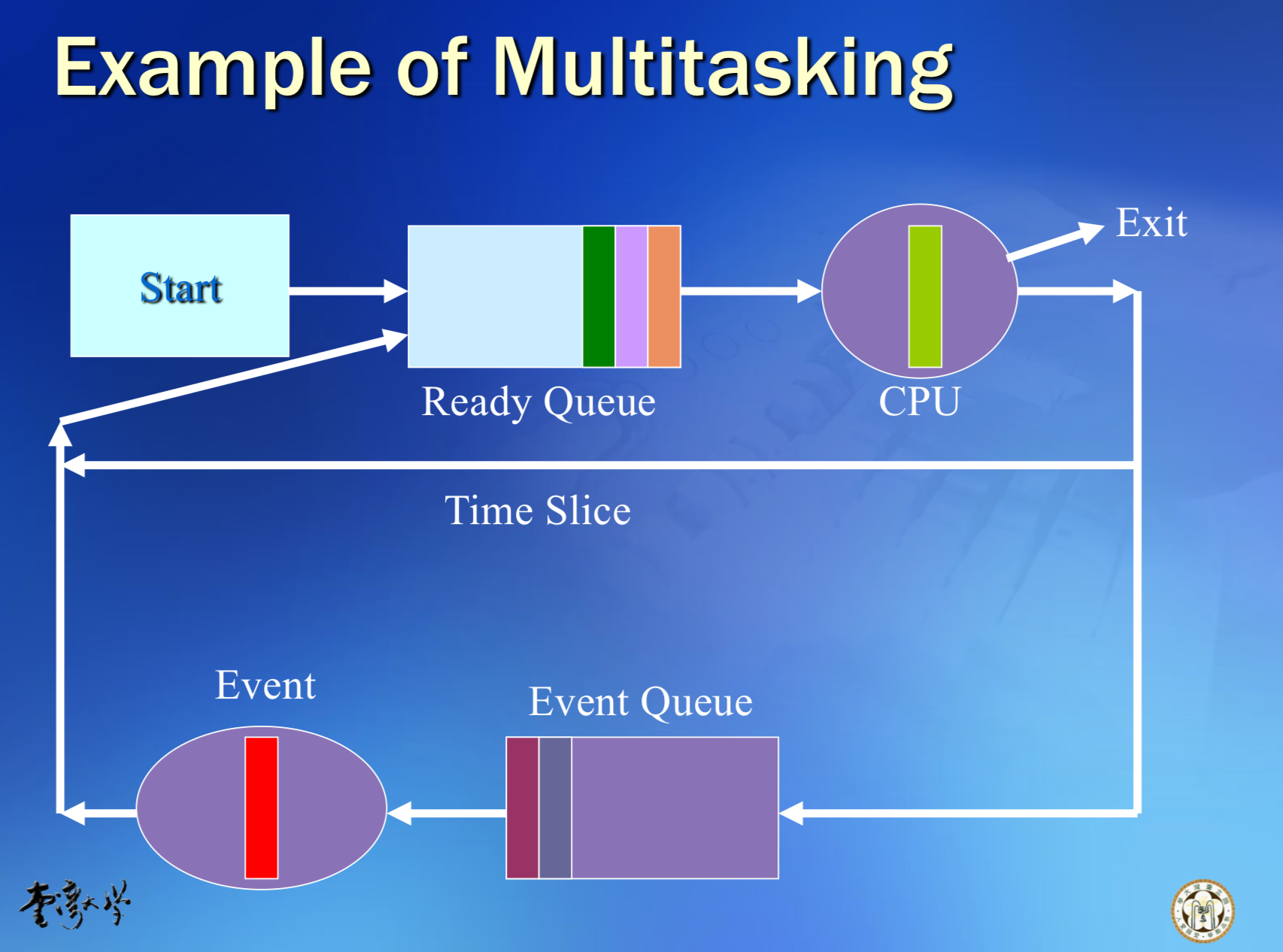 When the CPU is empty, it’ll select an instruction from the ready queue and start executing.
