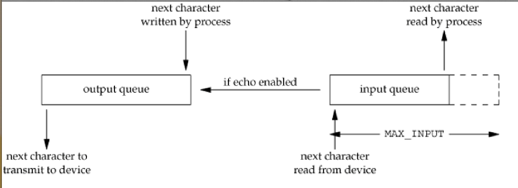 When we type in characters, the characters won’t be processed immediately. Instead, they will be pushed into the input queue. Then, once the shell or processes are ready to read, it will pop characters from the queue and process them